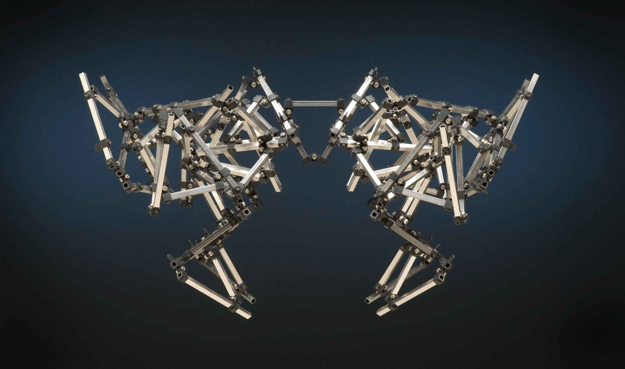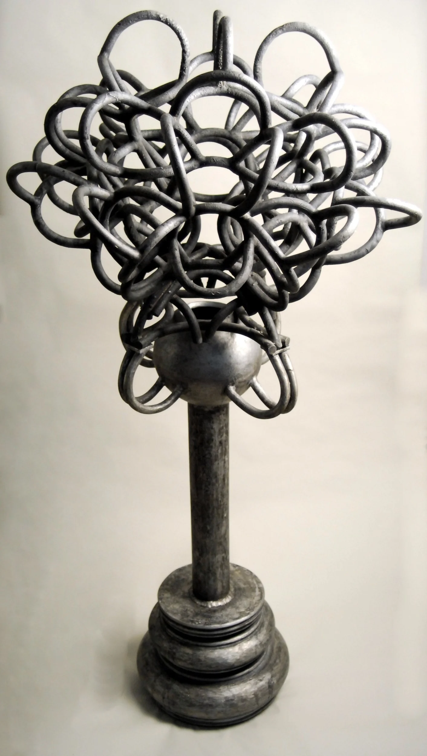 4 gage copper wire bent into one shape and repeated. All shapes assembled and soldered together. Black liver of sulfur patina finish.